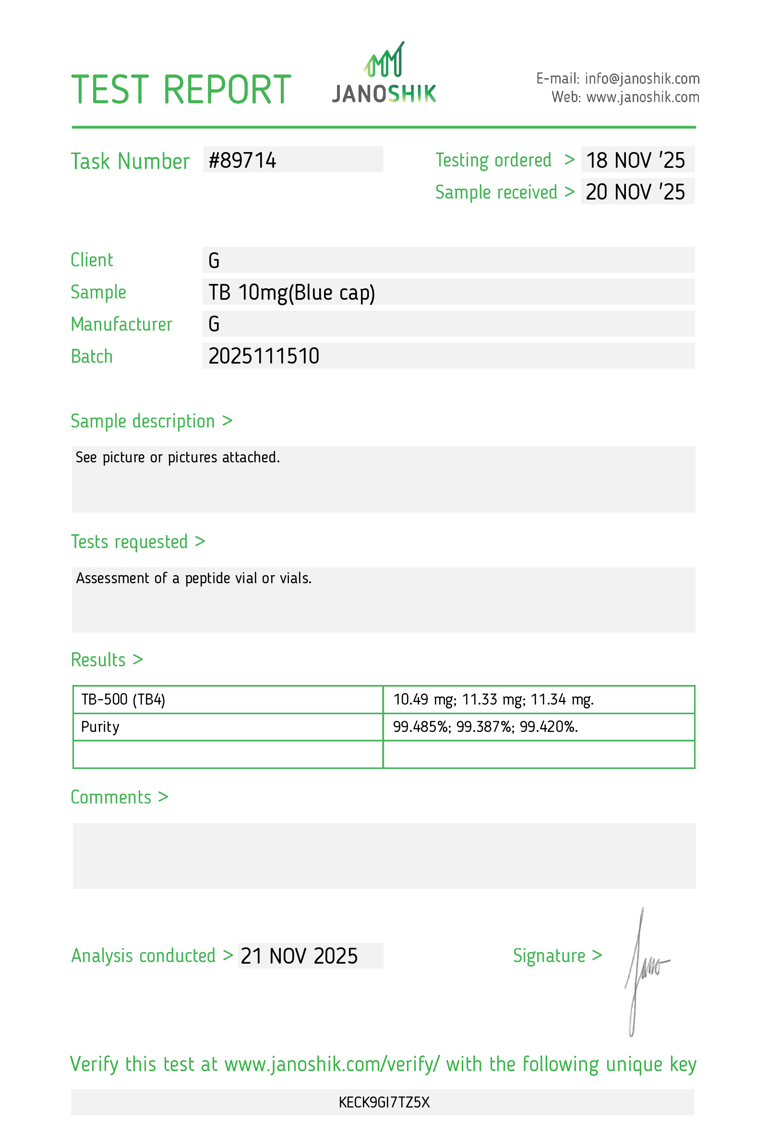Batch verified for identity, purity, and structural integrity